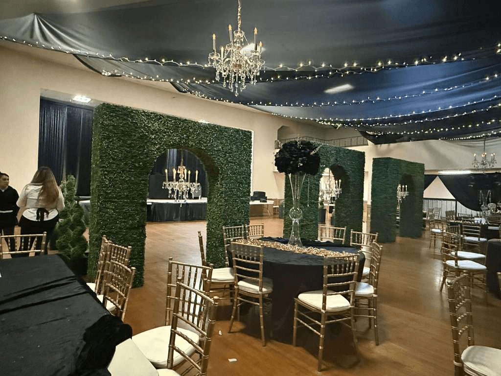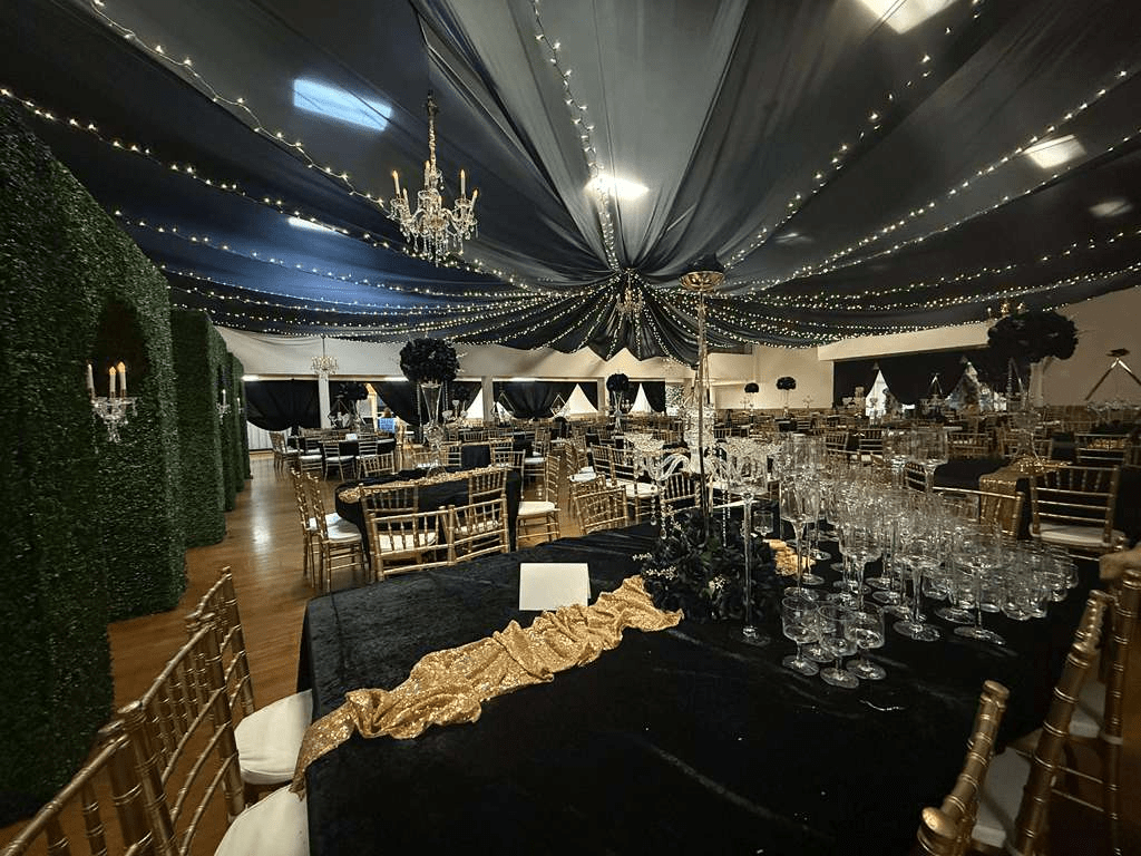 At Plus Party Rentals, we specialize in elegant draping and floral decorations that elevate weddings, corporate events, and private celebrations. Our team designs custom backdrops, ceiling drapes, fine linens, and floral arrangements to bring your vision to life.